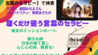 ラジオ 本日、ラジオ放送の日です! リンク⬇️ 本日もラジオの日です! 20時半になりましたら、 【ゆめのたね 言葉のセラピー】 で検索してご視聴ください 本日のゲストは、 【金田みちよさん】 15年以上の友人です。 彼女のミッショ... 2025.10.02 ラジオラジオパーソナリティー自分を生きる言葉のセラピー